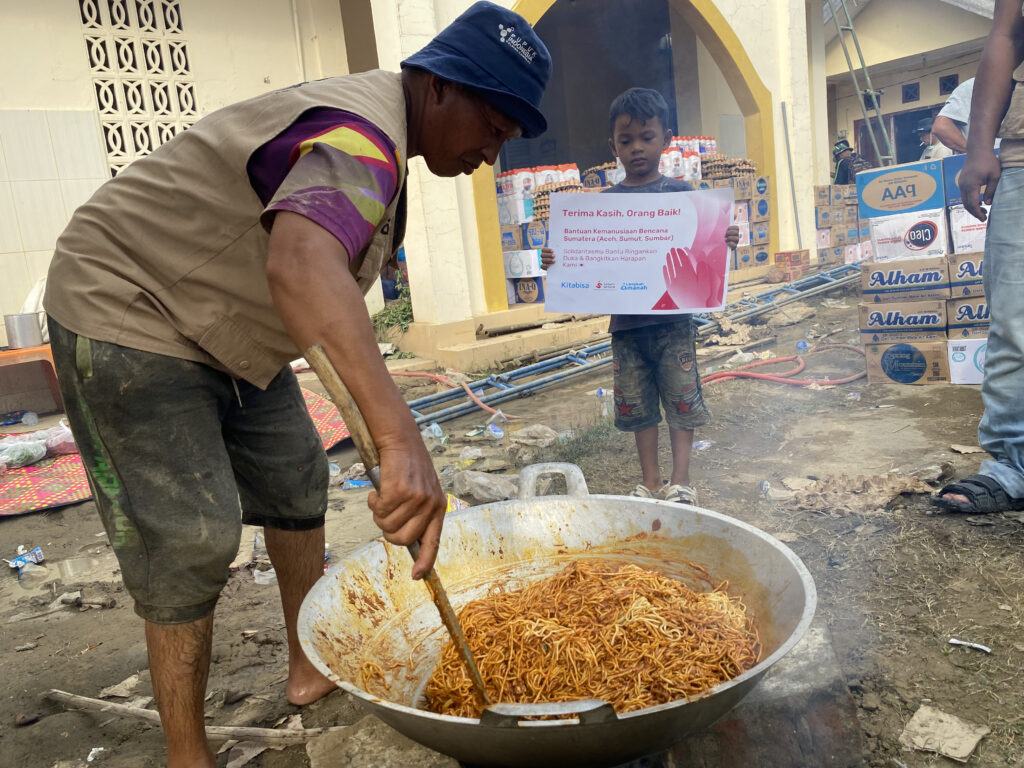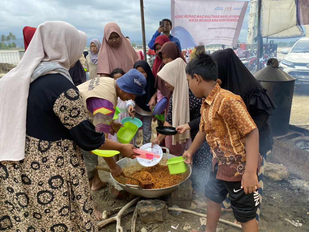 Sebanyak 900 jiwa menerima manfaat dari penyaluran ini. Makanan yang dibagikan berupa nasi dan mie Aceh, menu hangat yang tidak hanya mengenyangkan, tetapi juga menghadirkan rasa nyaman dan kekuatan bagi para penyintas. Di tengah keterbatasan fasilitas memasak dan akses logistik pasca bencana, makanan siap saji menjadi solusi penting agar masyarakat tetap dapat memenuhi kebutuhan energi mereka sehari-hari.