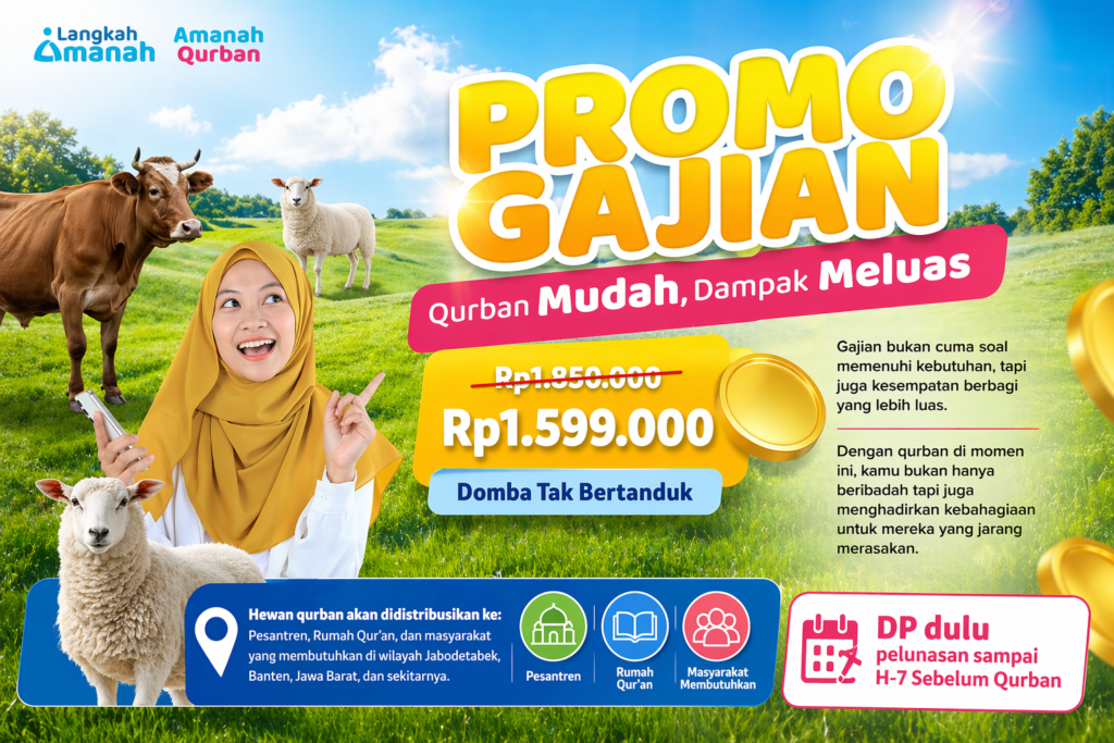 Momen gajian sering kali identik dengan memenuhi kebutuhan pribadi. Namun, lebih dari itu, gajian juga bisa menjadi kesempatan emas untuk memperluas manfaat dan berbagi kepada sesama. Melalui Promo Gajian Qurban, kini ibadah qurban menjadi lebih mudah, terjangkau, dan berdampak luas.